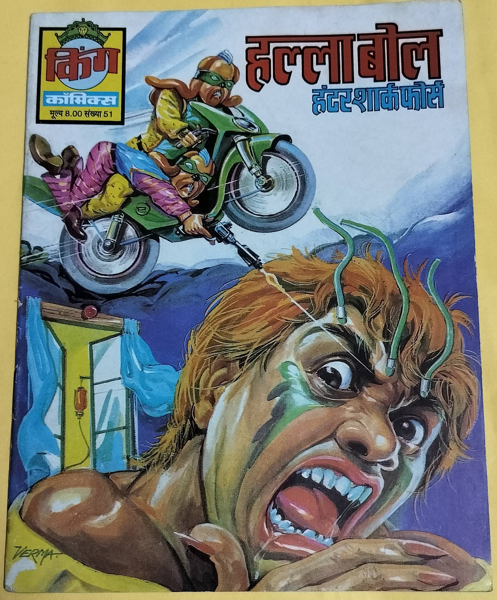 HomeKing ComicsHalla Bol – “hunter shark force” – “king comics”Halla Bol – “hunter shark force” – “king comics”₹249.00 Publisher:- King Comics Edition:- First Issue No.51 Page:- Normal Condition:- Mint Key Characters:- Hunter Shark Force Out of stock Category: King Comics Product ID: 40804 Description Reviews (0) Additional information Reviews There are no reviews yet. Be the first to review “Halla Bol – “hunter shark force” – “king comics”” Cancel replyYour email address will not be published. Required fields are marked *Name * Email * Save my name, email, and website in this browser for the next time I comment. Your rating * Rate… Perfect Good Average Not that bad Very poor Your review * I agree that my submitted data is being collected and stored. Related products Out of stock Add to WishlistRemove from Wishlist Add to Wishlist Gamraj aur Mr Natwarlal – “gamraj” – “rare king comics” ₹499.00 Read more Out of stock Add to WishlistRemove from Wishlist Add to Wishlist Blind Death – “vintage king comics” ₹249.00 Read more Out of stock Add to WishlistRemove from Wishlist Add to Wishlist Doctor Rhu – “old king comics” ₹249.00 Read more